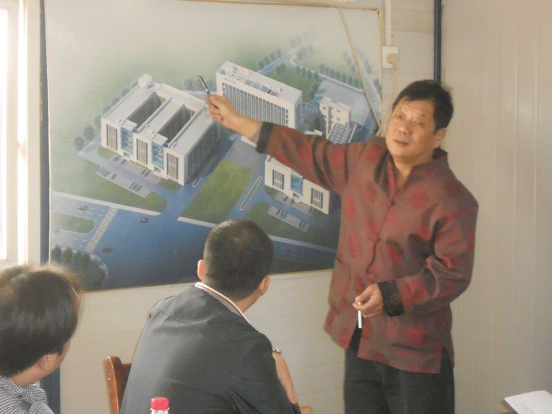项目经理邱汉宁正在介绍节能环保元素在国家节能建筑材料质量监督检测中心项目中的应用;