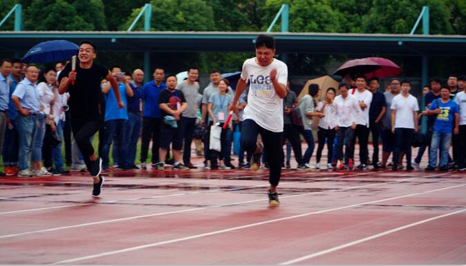运动会的开幕式在逐渐变大的雨势中如期举行着,领导们更是在雨中为运动会的开幕致辞,这些都给我们的运动员们带来了极大的鼓舞,没有风雨如何见到彩虹,没有汗水的洗礼,没有集体凝聚战胜困难的力量,如何在运动会场上展现我们“华太人”的风采,接力赛体现着运动员们之间的配合,接力棒在手中传递的是集体的力量,在风急雨大的时刻公司全体参赛选手和啦啦队员栉风沐雨,奔跑着、呐喊着、传递着,用自己的行动和热情诠释着集体的力量,在风雨中他们不断突破自我,啦啦队的激情也感染着他们,欢笑声、加油声、胜利时刻的呐喊声充分体现了公司员工之间的团结友爱,拼搏向上,坚守信念的精神,也为公司蒸蒸日上的未来勾勒出了一幅美丽的蓝图。
