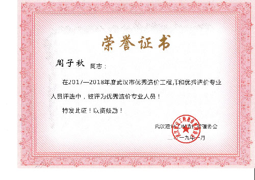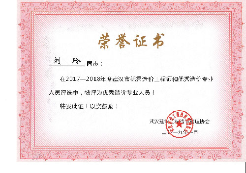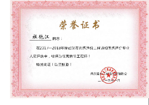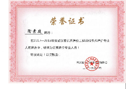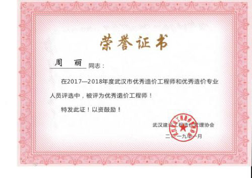 与时俱进、开拓进取——热烈祝贺我司周丽等6名同志荣获“2017-2018年度武汉市优秀造价工程师和优秀造价专业人员”