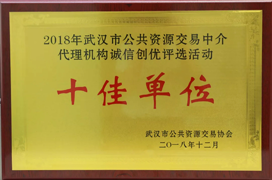 ——热烈祝贺东方华太公司荣获“武汉市2018年度公共资源交易中介代理机构诚信创优十佳单位”称号